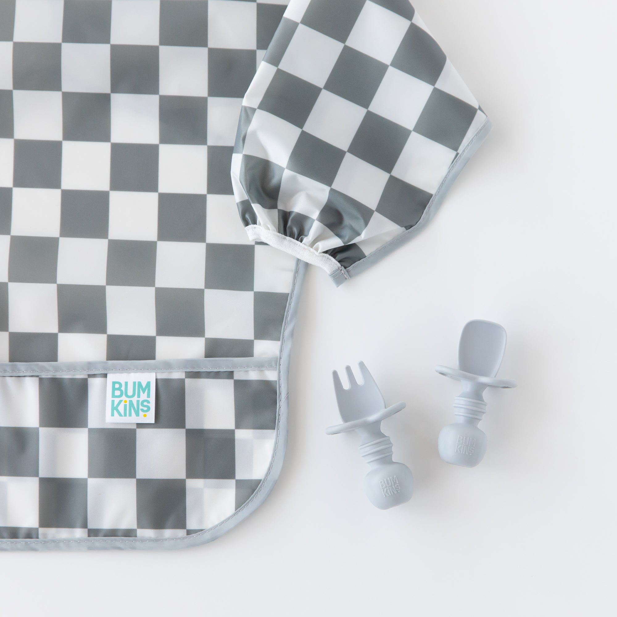 The Sleeved Bib is made from our signature waterproof fabric. They feature full-length sleeves to give your little one the true coverage needed while they dig into the adventures of self-feeding.