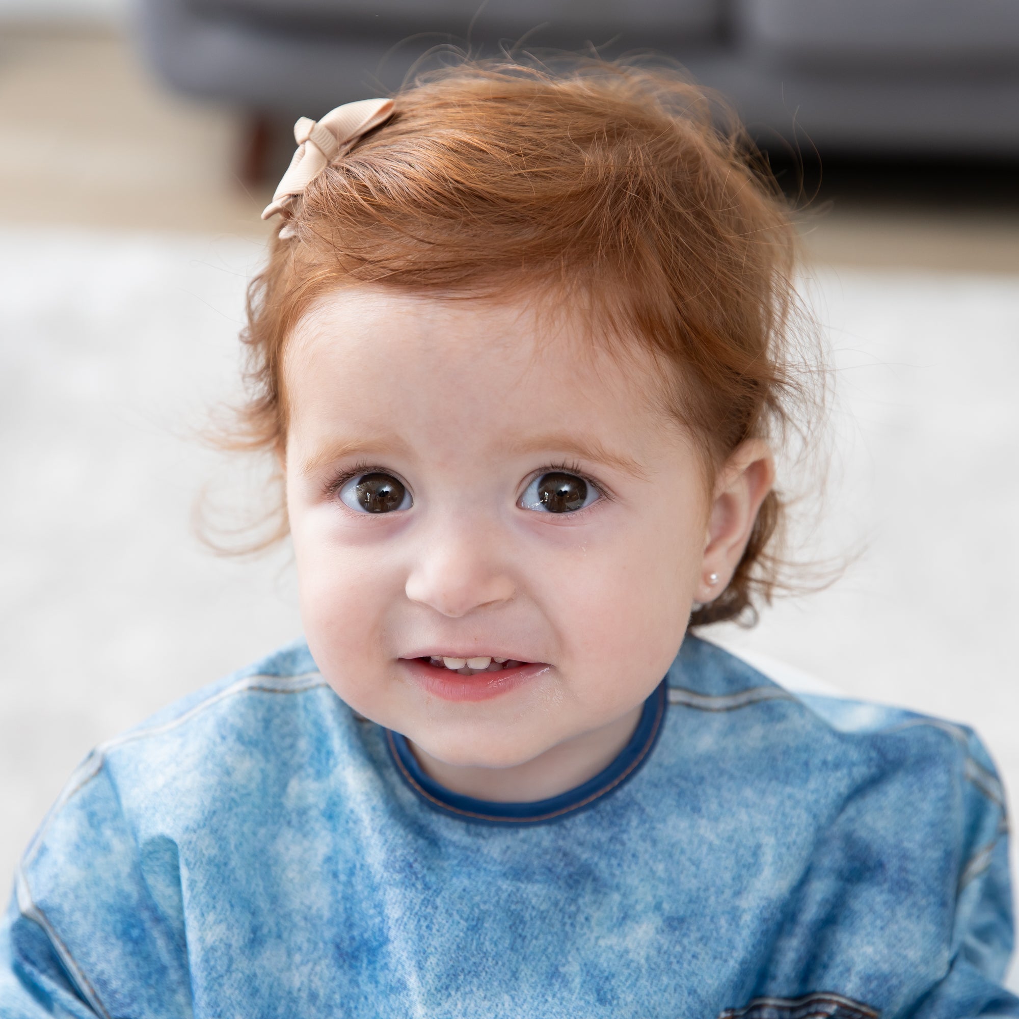 • Sleeved Bib provides full-coverage protection for cleaner meals and play