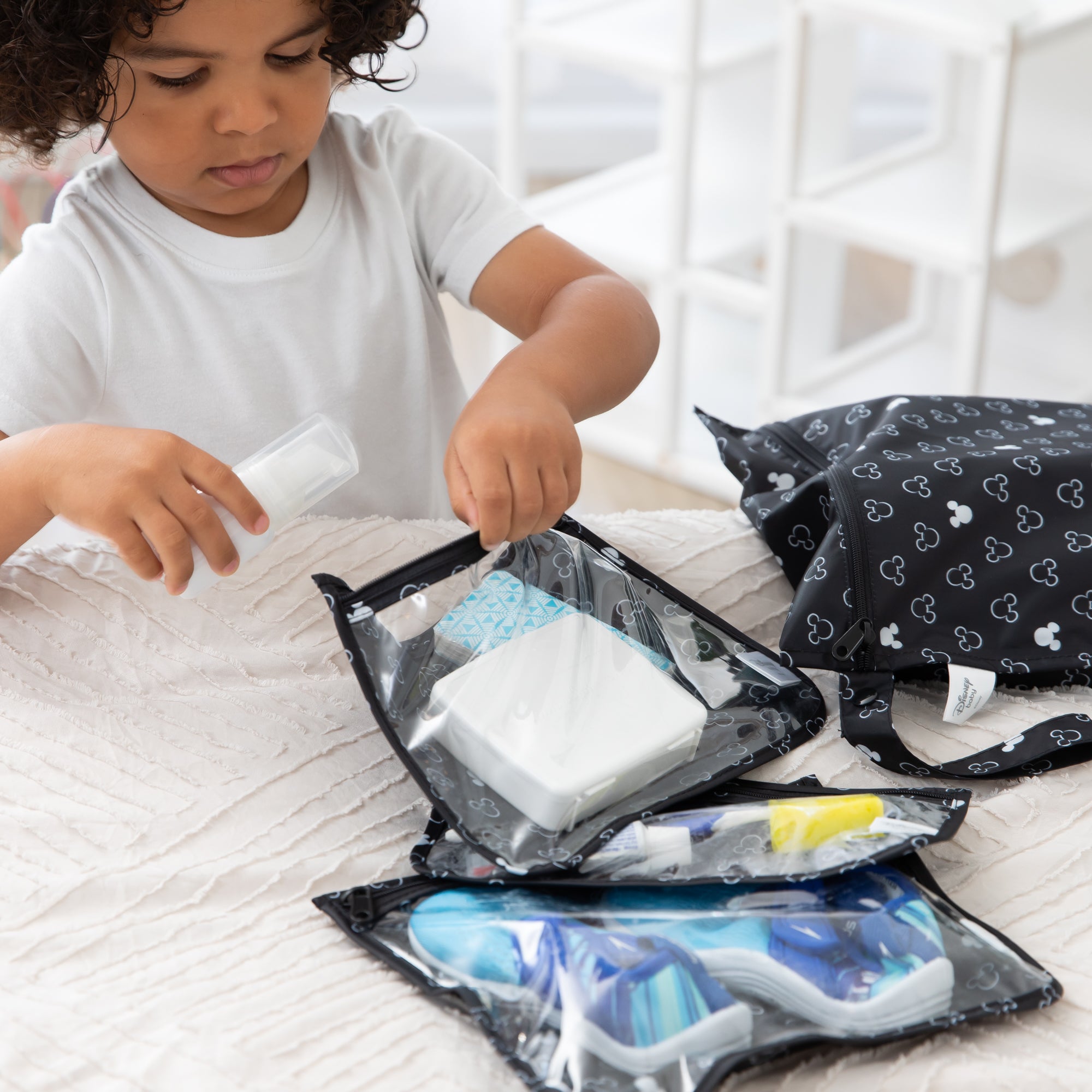 - Three Clear Travel Bags: Perfect for organizing all your pacifiers and endless trinkets within purses, diaper bags, or suitcases—you can easily see what’s inside. Large 9.5” x 8.5”, Medium 9” x 7”, Small 9” x 5”