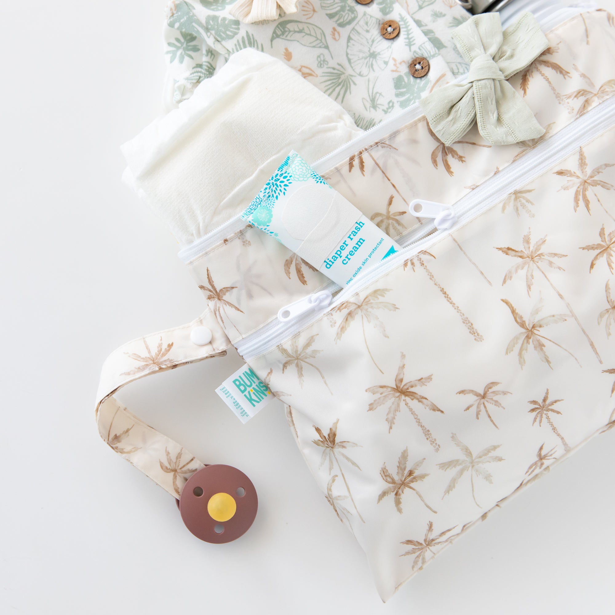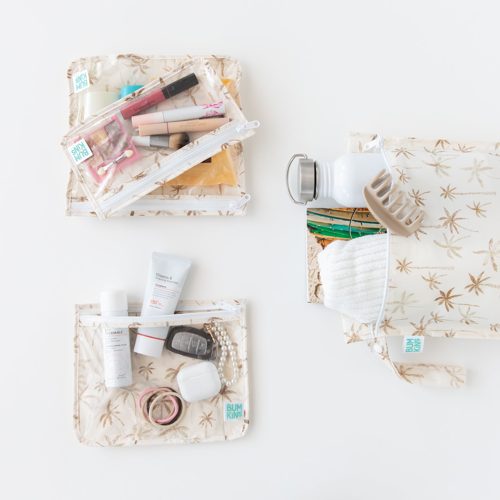 • Three Clear Travel Bags: Organize pacifiers, trinkets, and more in purses, diaper bags, or suitcases—you can easily see what’s inside. Large 9.5” x 8.5”, Medium 9” x 7”, Small 9” x 5”