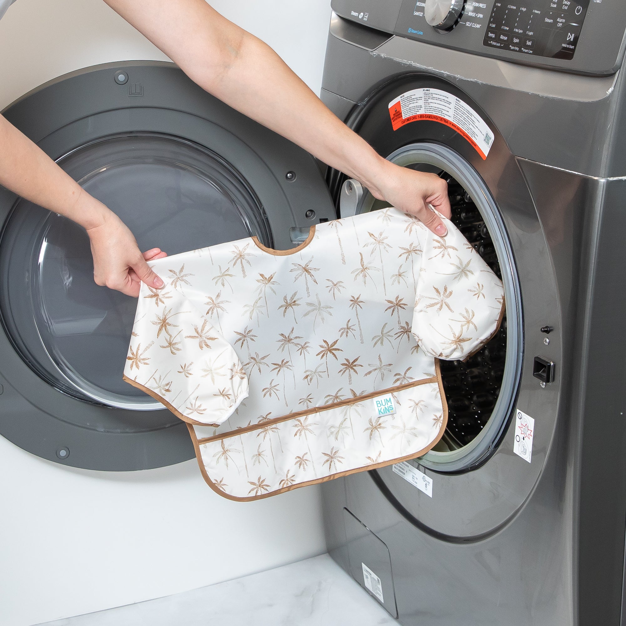 Mealtime and playtime can be messy, but our signature waterproof fabric has you covered. Made from durable, water-resistant material, our Sleeved Bib provides full coverage to protect your baby’s clothes from spills, stains, odors, and dribbles. When it gets dirty, simply wipe the mess away or throw it in the washing machine for easy cleanup.