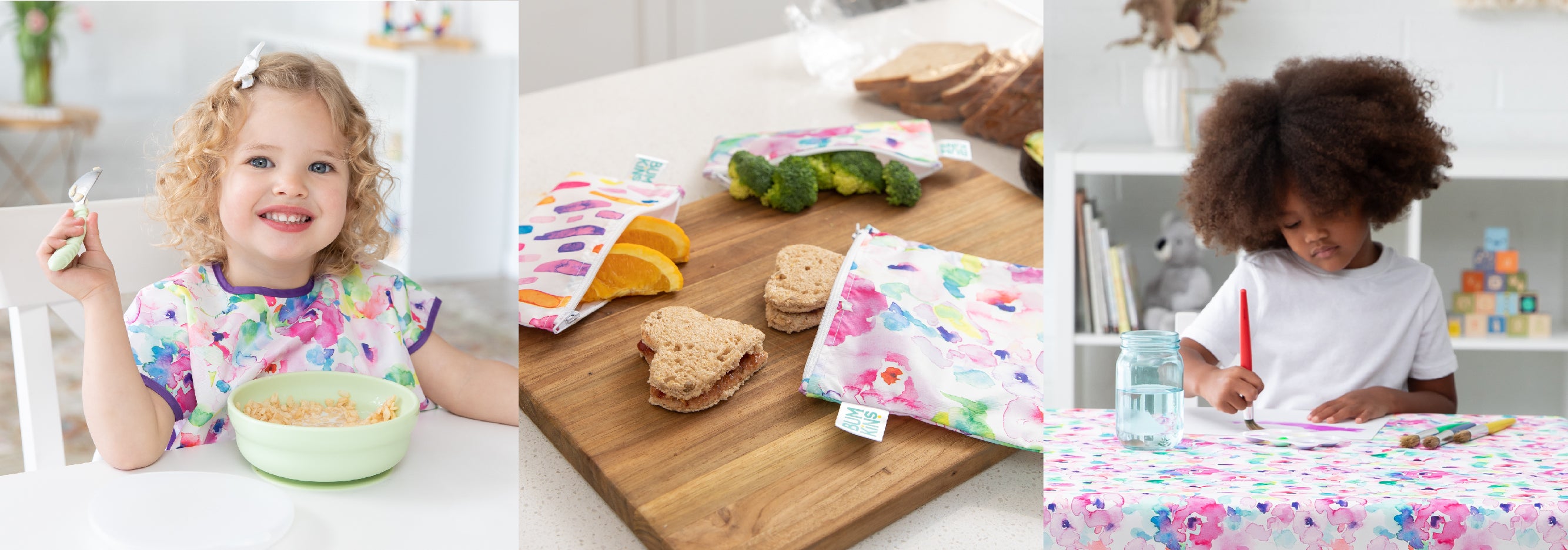 Bright, painterly patterns make the Watercolor + Brush Strokes Collection stand out from the crowd. Colorful swirls and brushy details bring a sense of creativity to family gear. Practical and durable, this collection turns everyday essentials into a canvas of playful color!